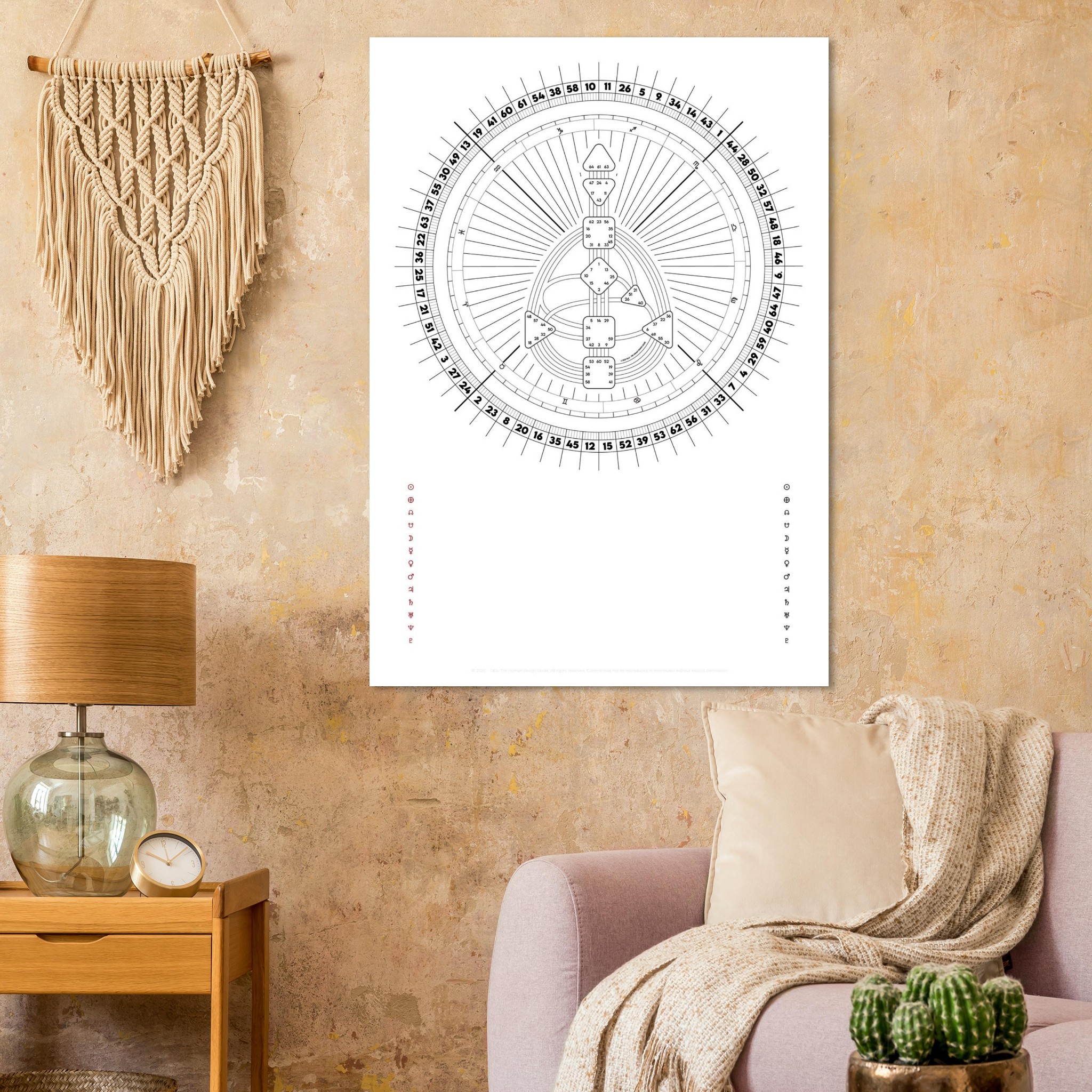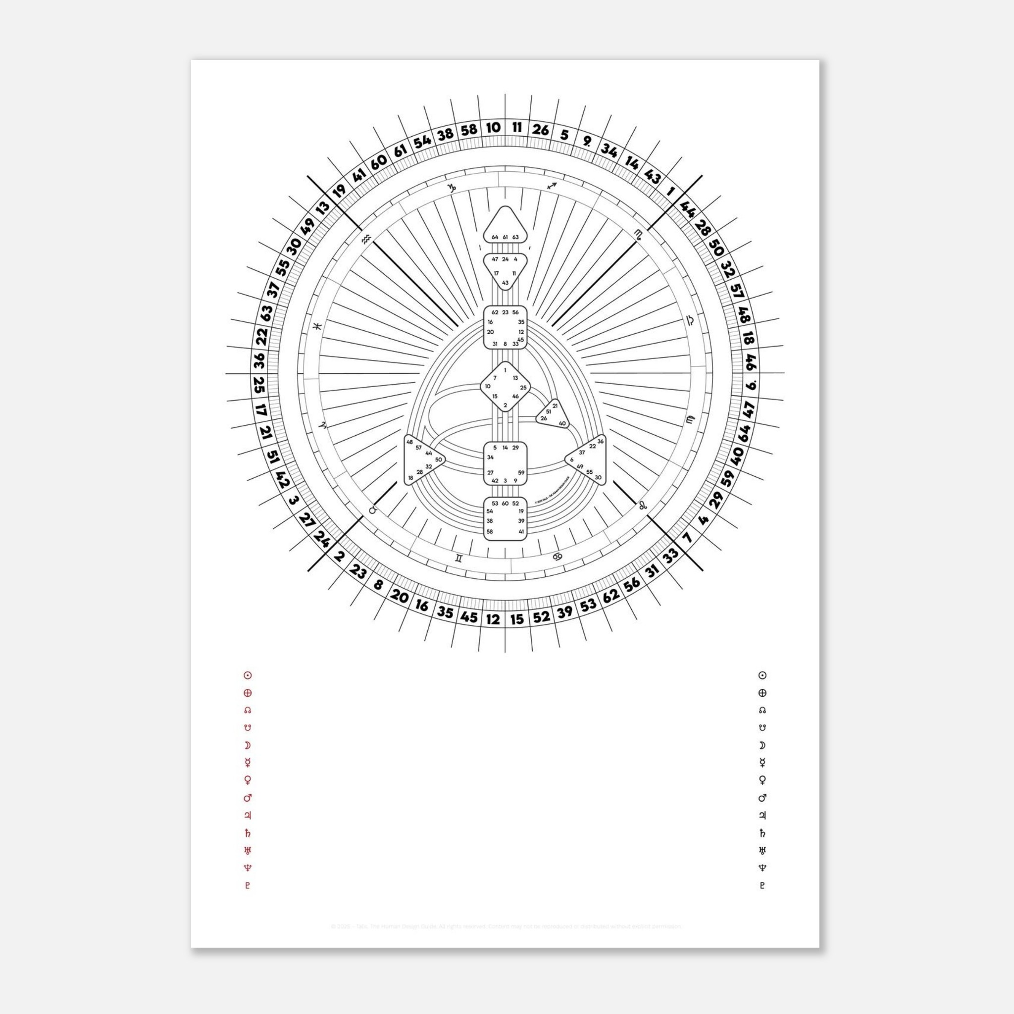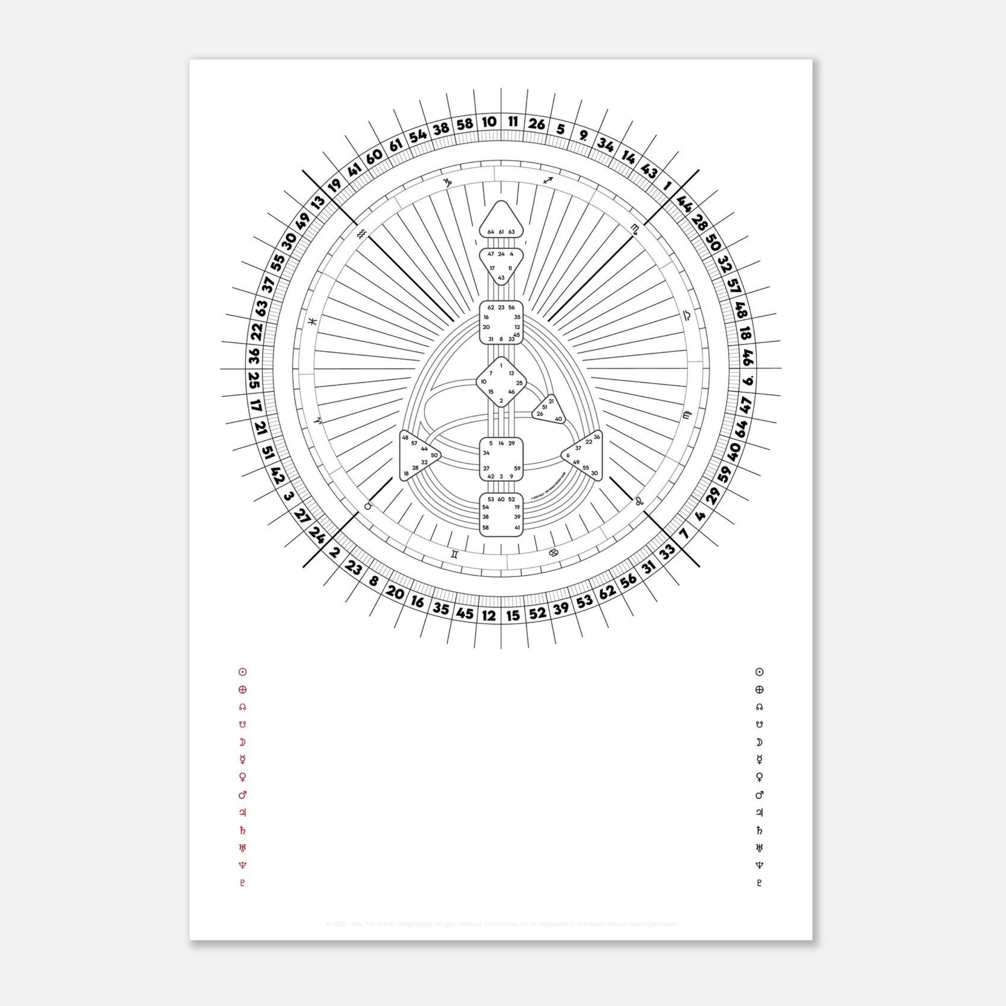 A fully detailed Rave Mandala with all 64 gates already printed. It gives you space to draw in your own activations, mark planetary positions, and add personal keynotes. Ideal if you want to see your entire imprint in relation to the Mandala and get hands-on experience with your design.